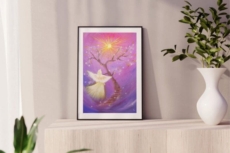 Du erhältst ein Engelbild nach einem Original Bild von mir. Natürlich inklusive Echtheitszertifikat, signiert und datiert.