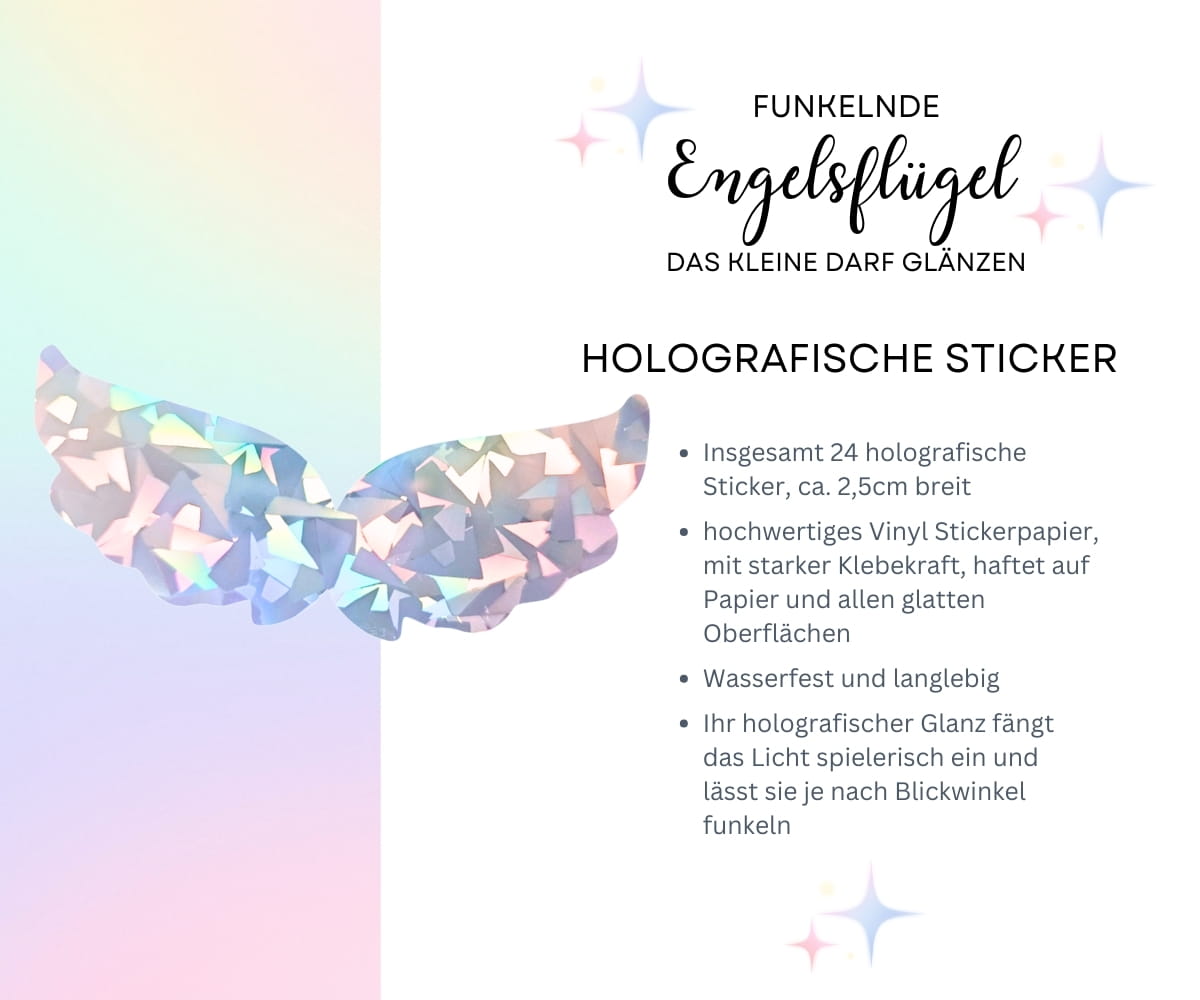 Das Set besteht aus 24 feinen Engelsflügel-Stickern, aufgeteilt auf zwei Bögen.