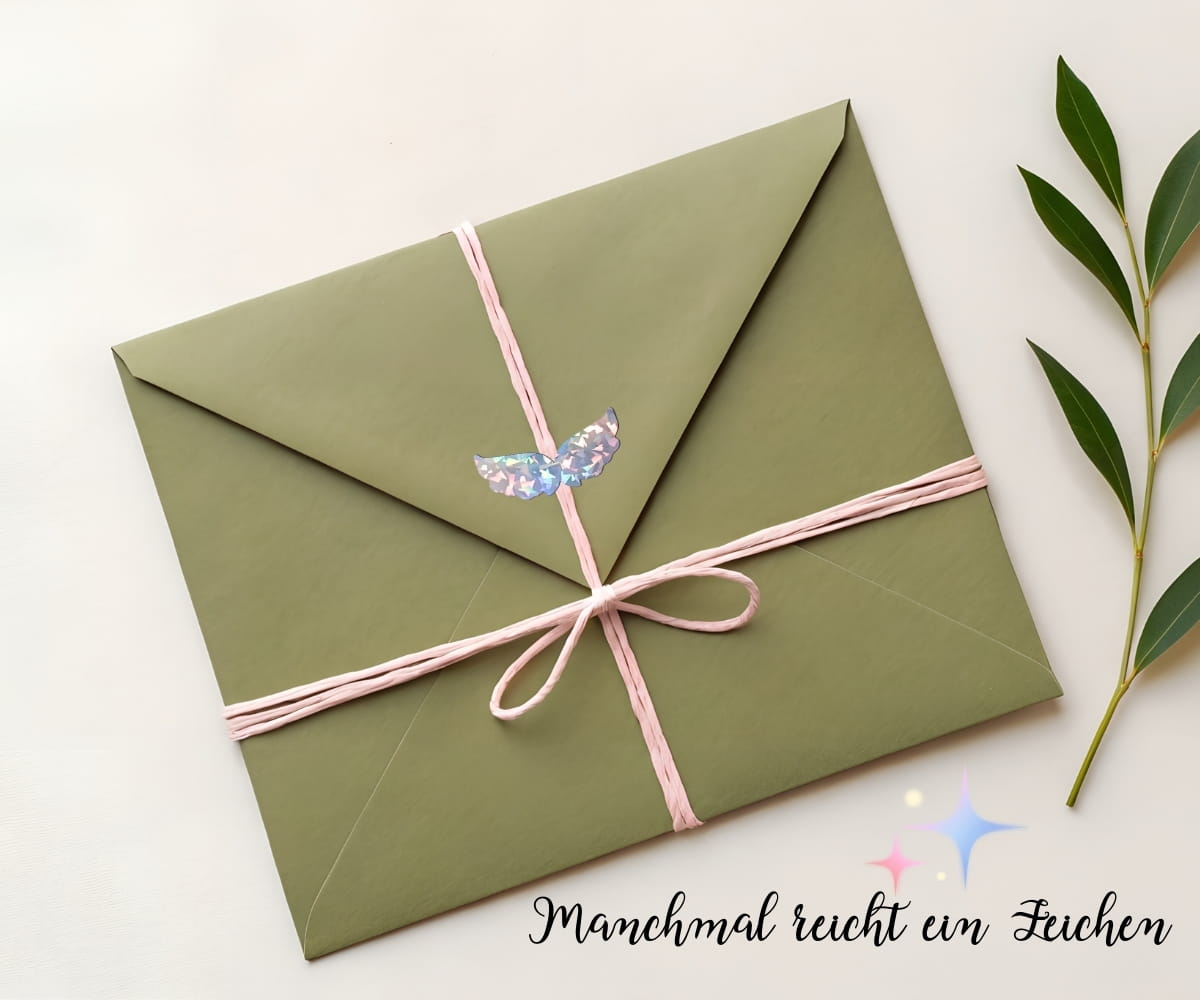 Diese Engelsflügel Sticker sind klein, schimmernd und voller Leichtigkeit und erinnern dich daran, dass es im Alltag mehr gibt als das Sichtbare.