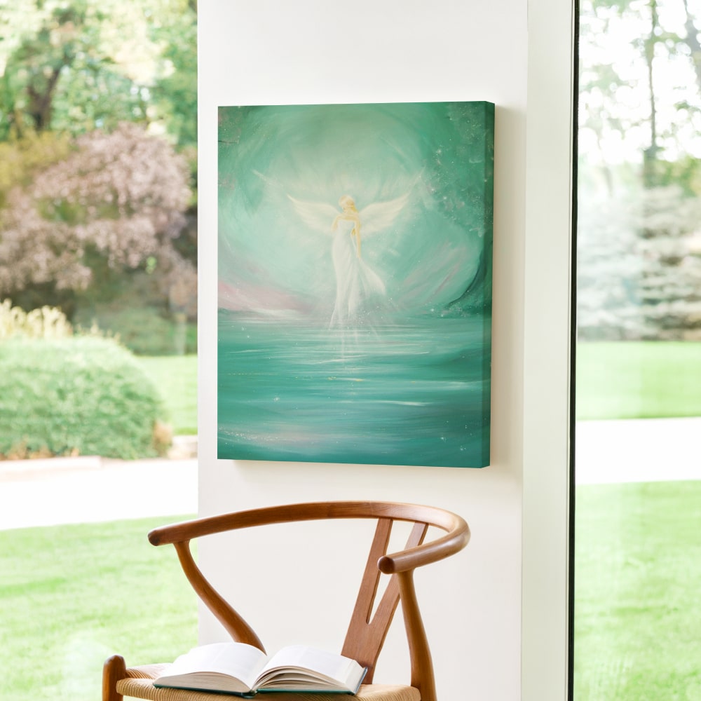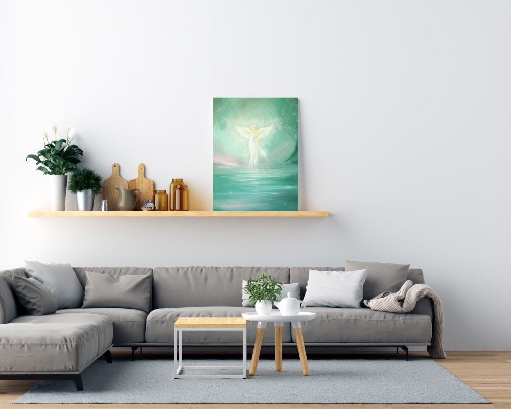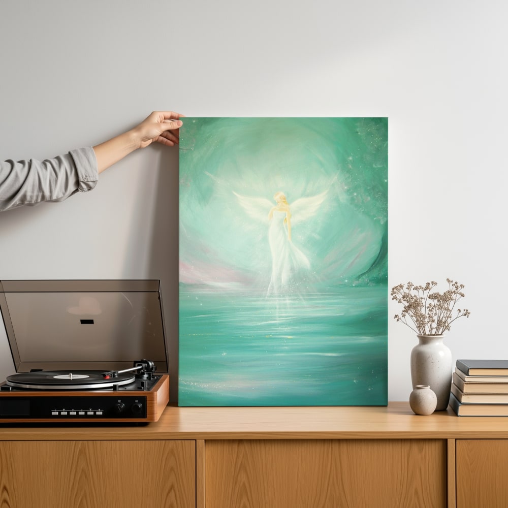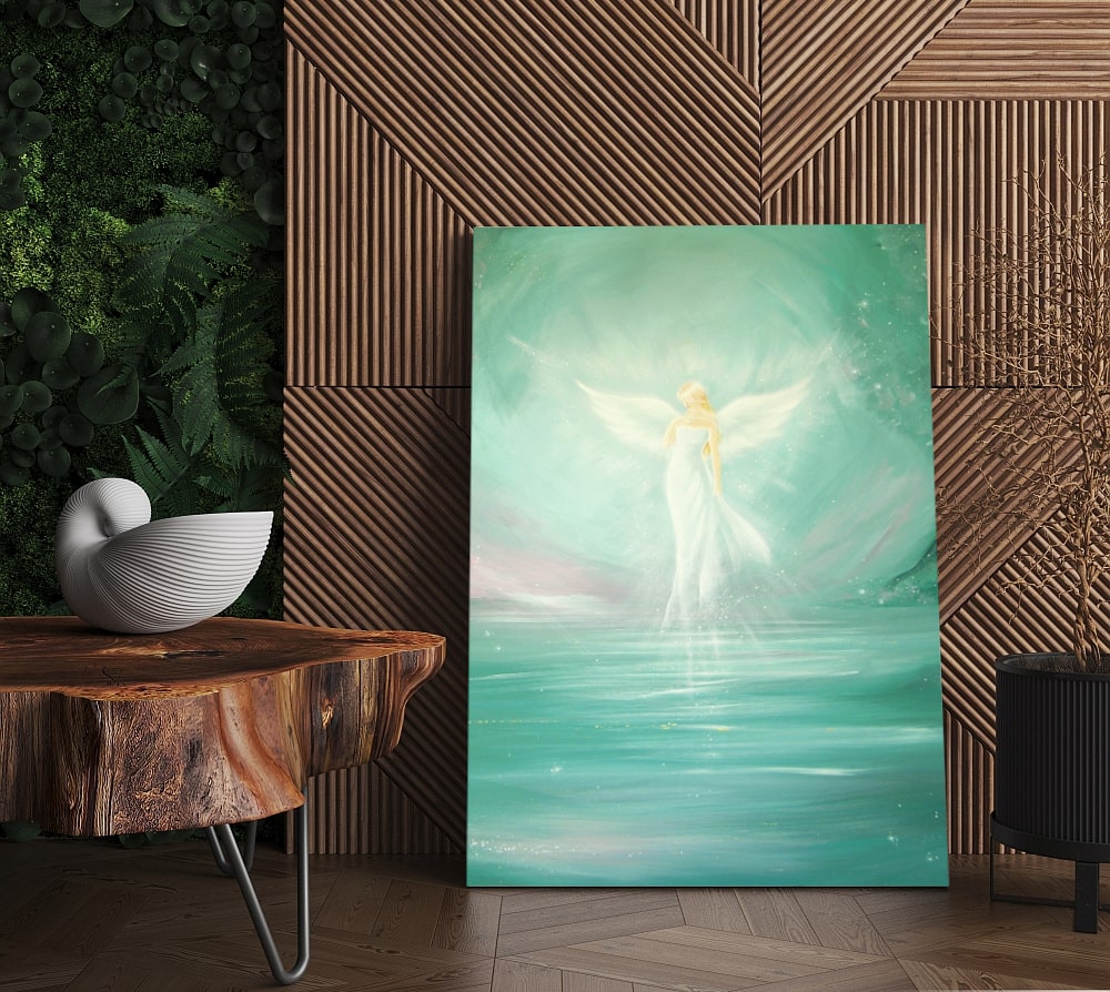 Ein Engelbild, das Räume weitet, beruhigt und die Atmosphäre mit sanftem Licht erfüllt.