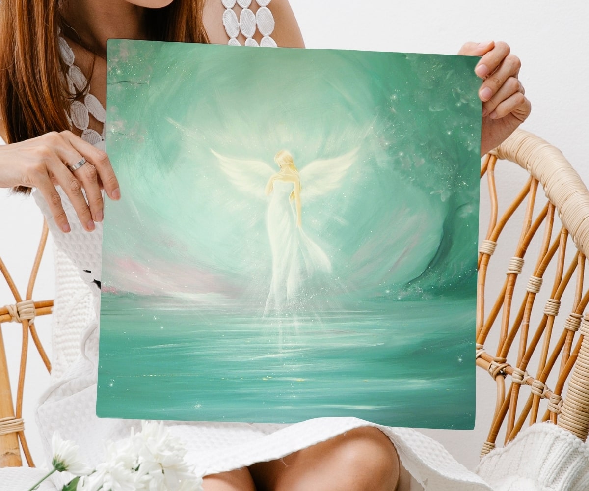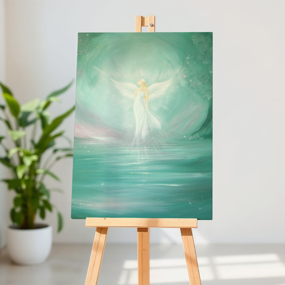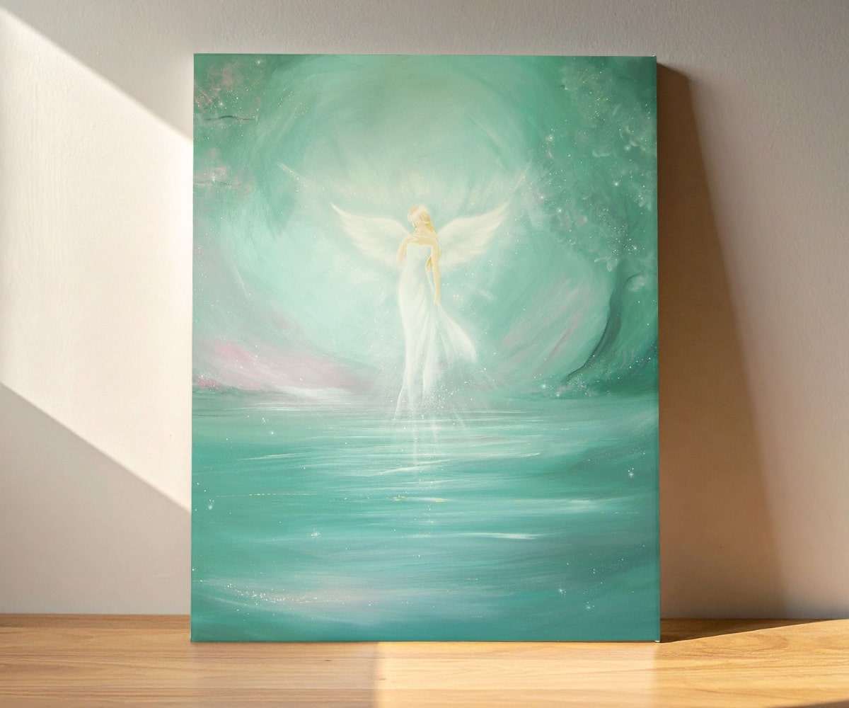 Ein Engelbild, das Räume weitet, beruhigt und die Atmosphäre mit sanftem Licht erfüllt.