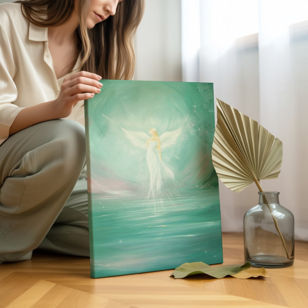 Warum dieses Engelbild besonders ist: Dieses Engelbild auf Leinwand schenkt Ruhe, Hoffnung und Leichtigkeit.