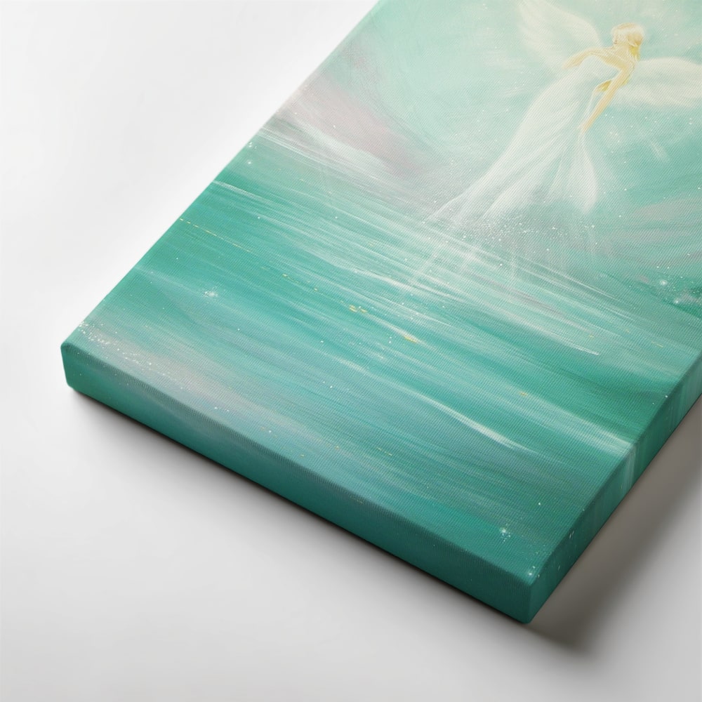Gedruckt auf hochwertiger Leinwand, bewahrt das Engelbild die Leuchtkraft des Originals.