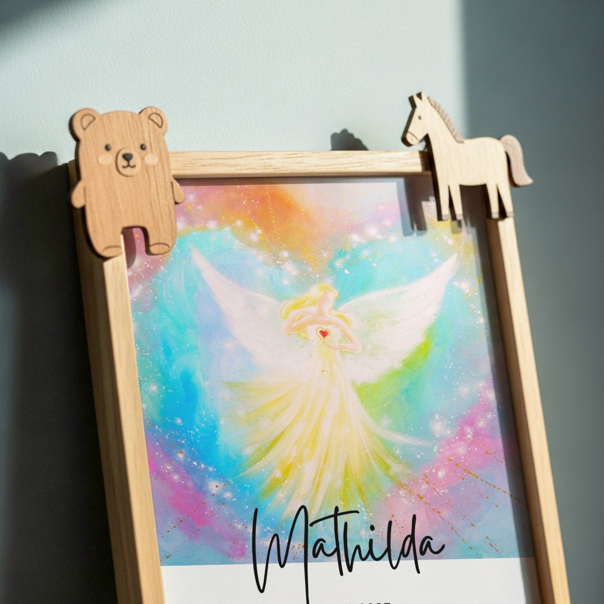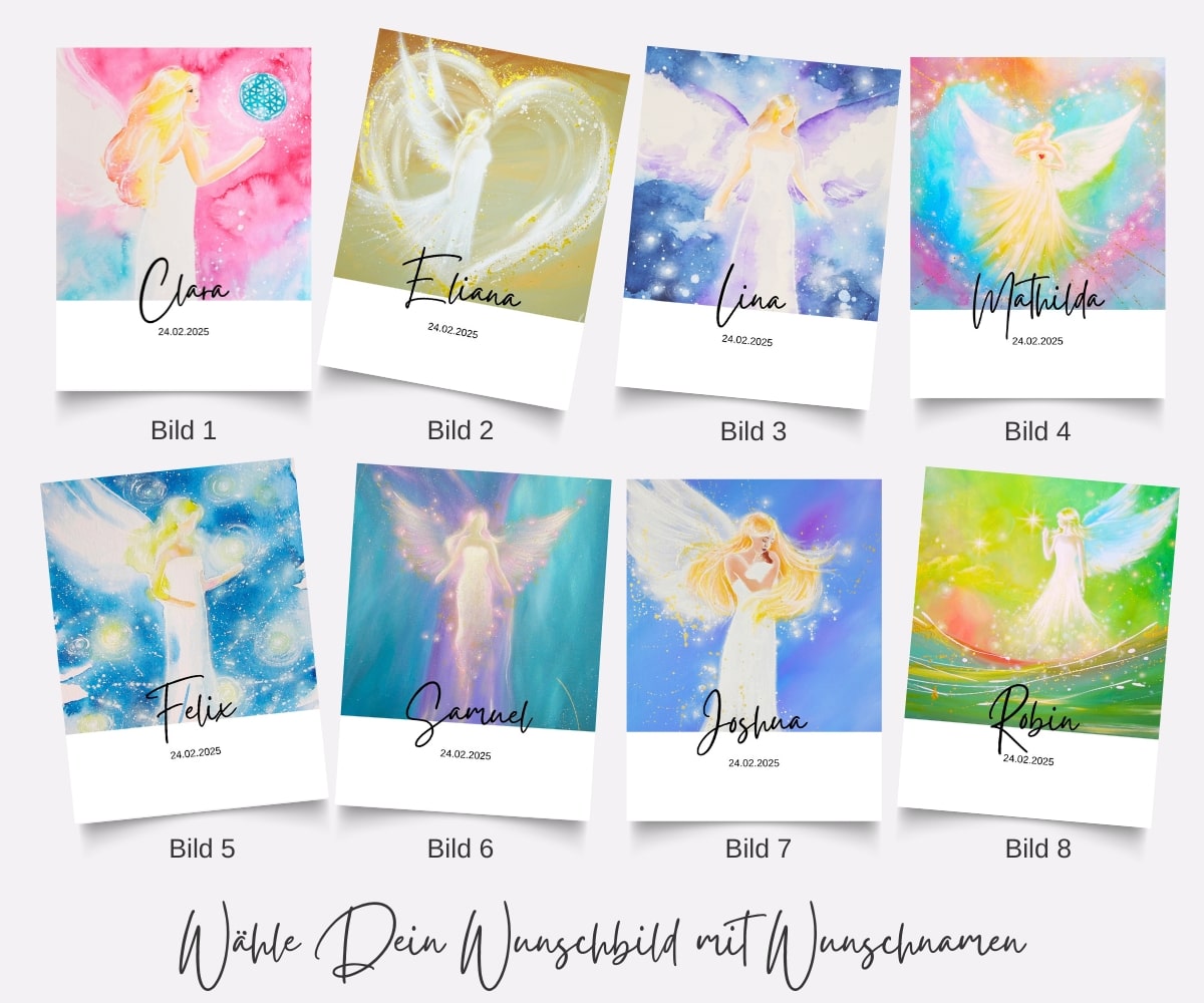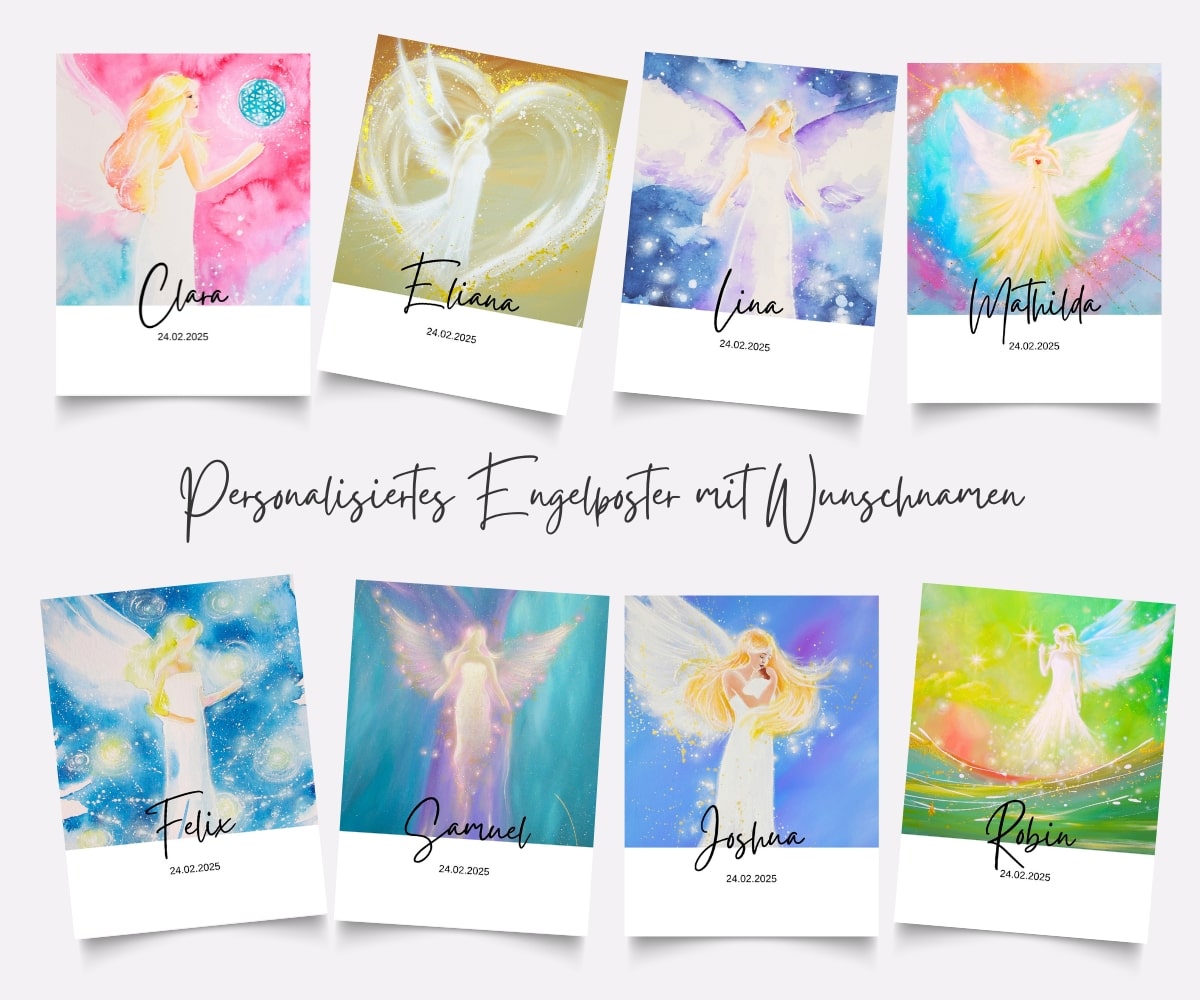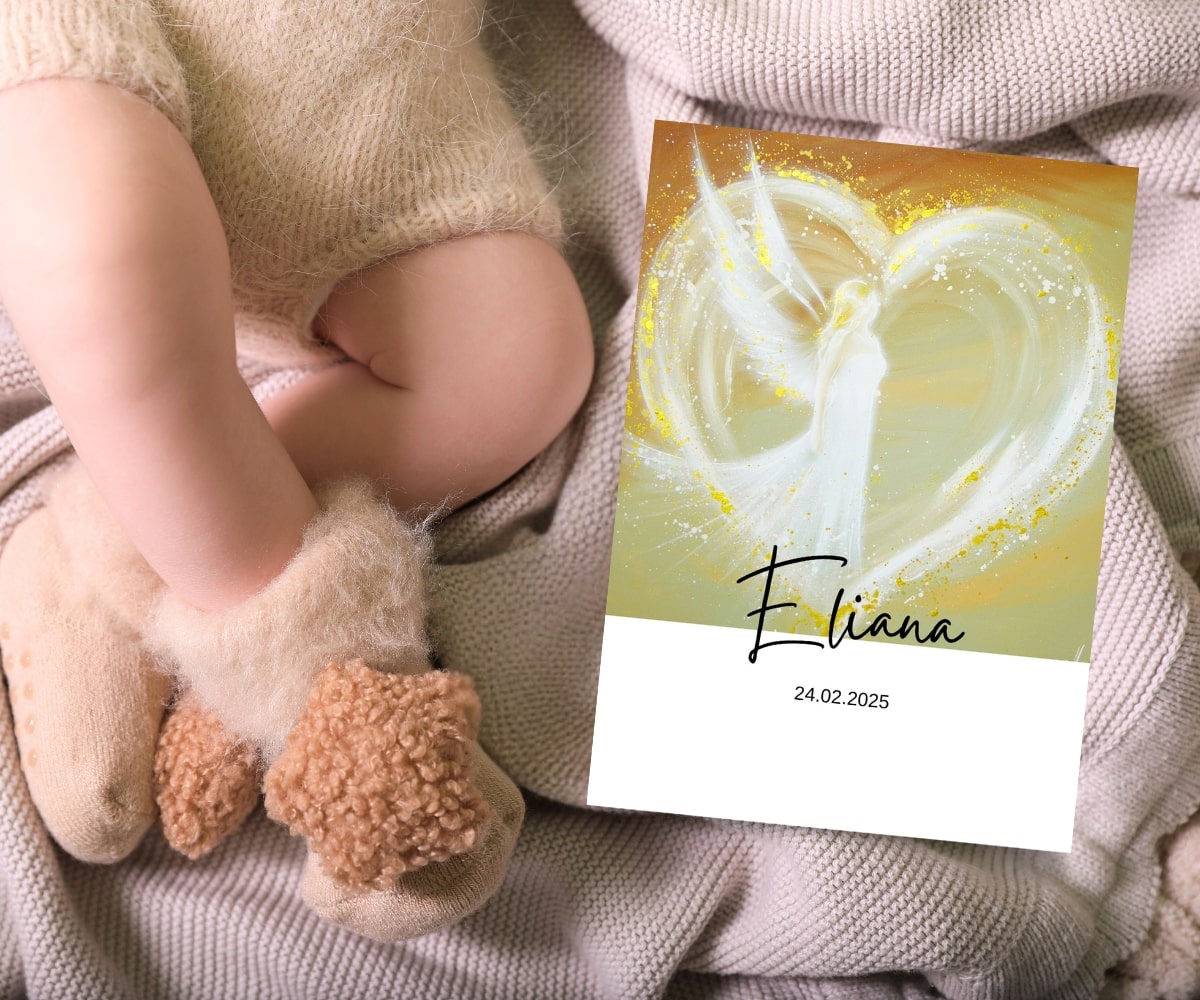 Mit deinem Wunschnamen und einem besonderen Datum (z. B. Taufe, Geburt oder Geburtstag) wird jedes Poster zu einem sehr persönlichen Erinnerungsstück. Ein Engel, der dein Kind behütet und mit seiner lichtvollen Botschaft Geborgenheit schenkt – einzigartig, wie der kleine Mensch, für den es bestimmt ist.