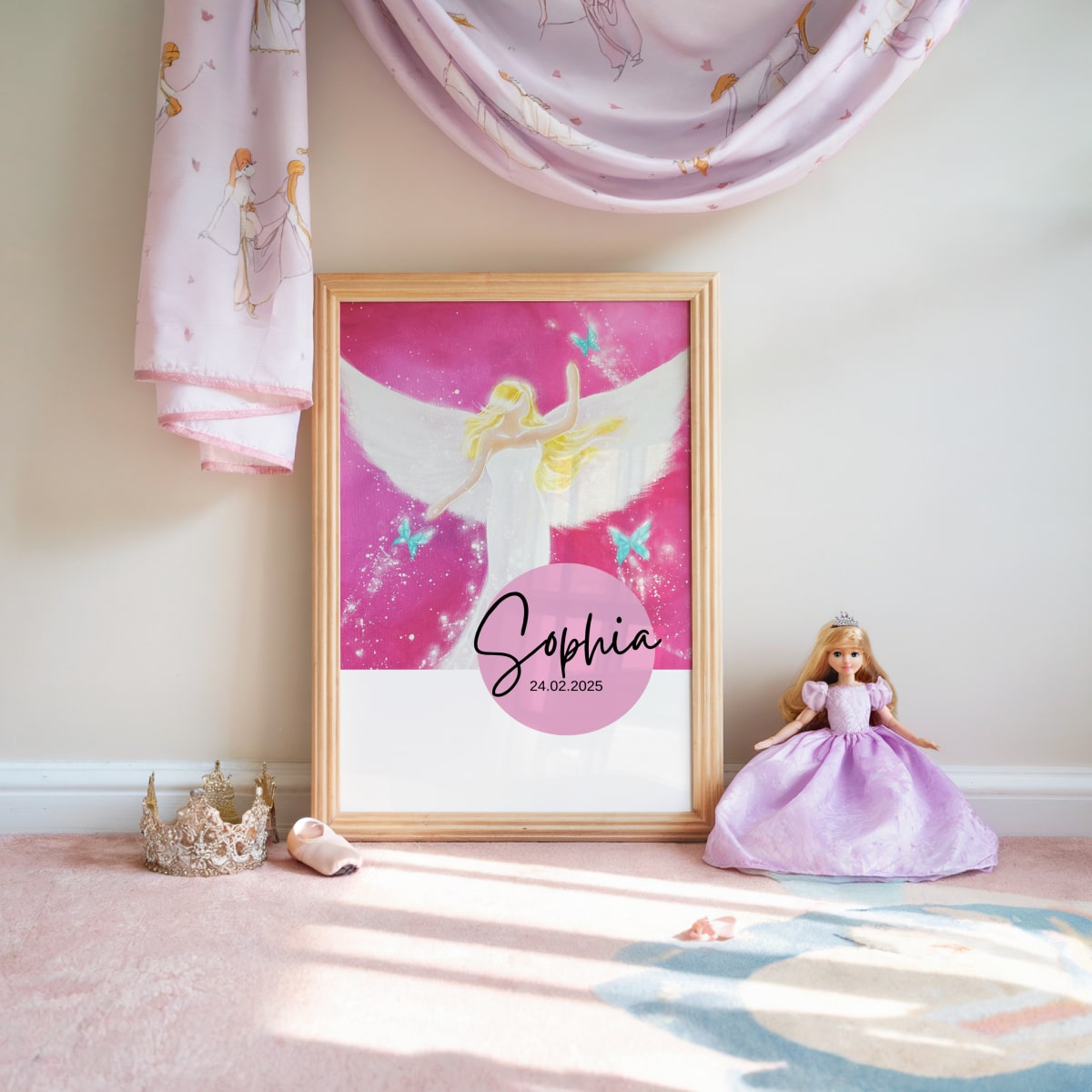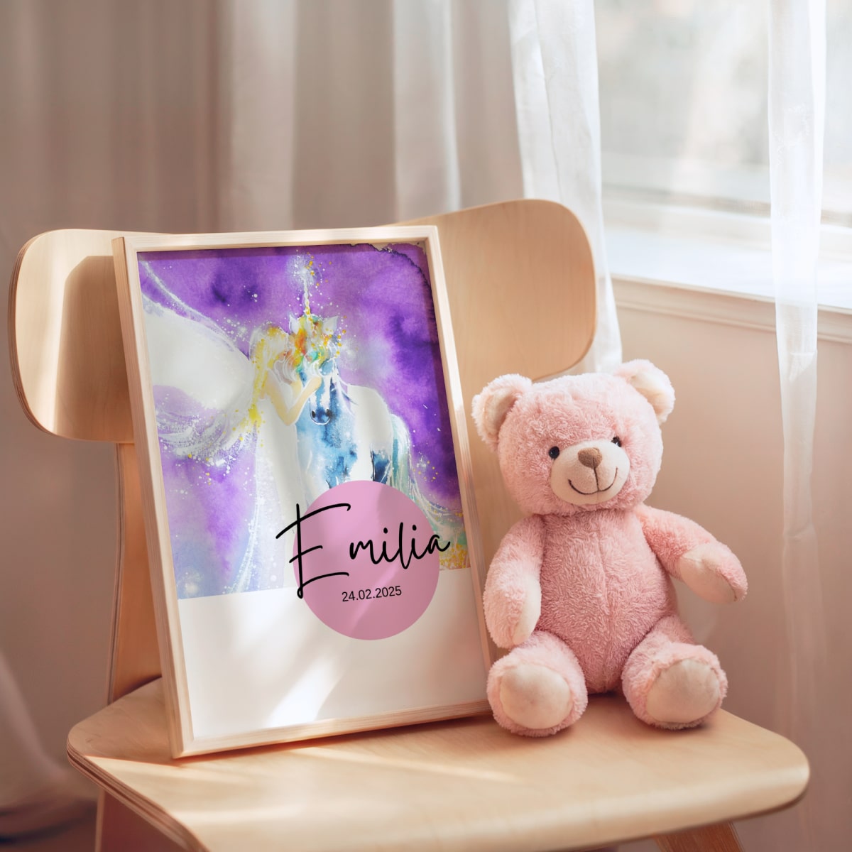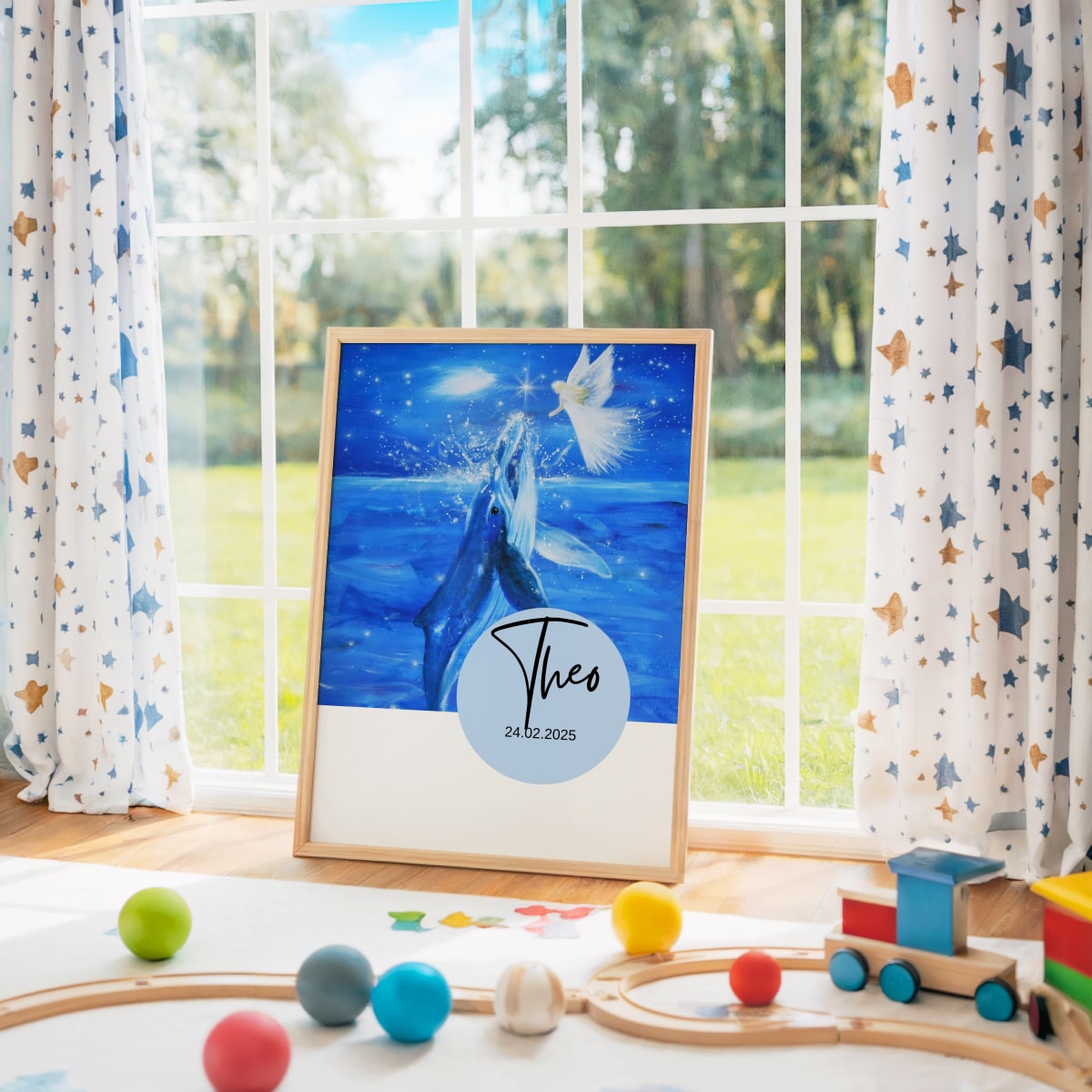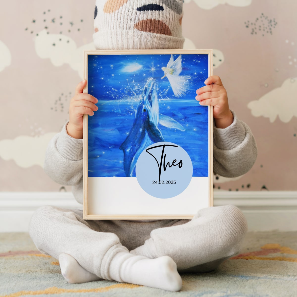 Für dein persönliches Poster schreibe ich den Namen und das besondere Datum deines Kindes in das Bild hinein. So wird daraus ein Erinnerungsstück voller Licht, Liebe und Geborgenheit – einzigartig, wie der kleine Mensch, für den es bestimmt ist.