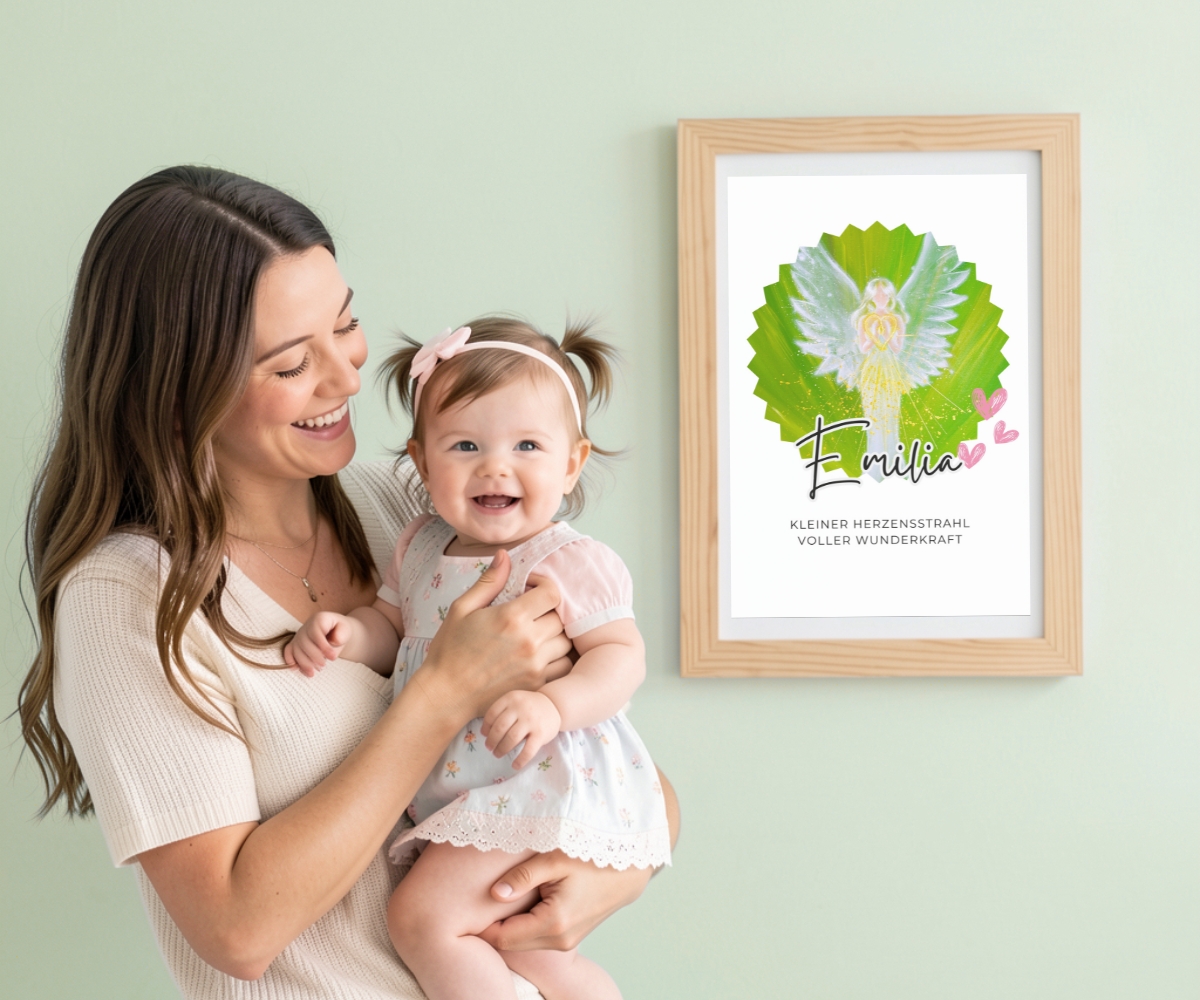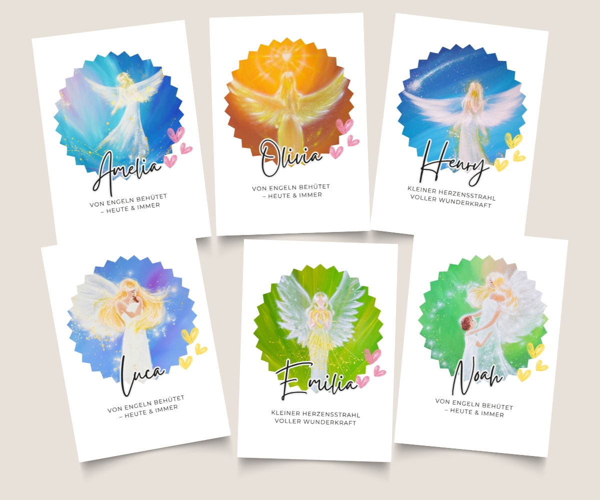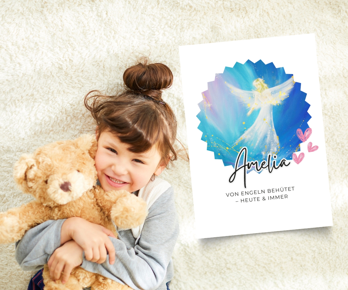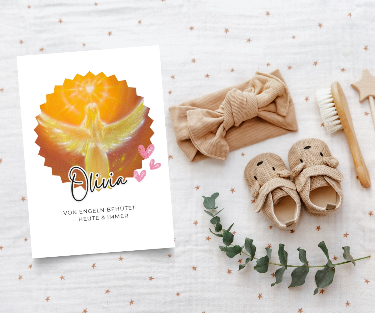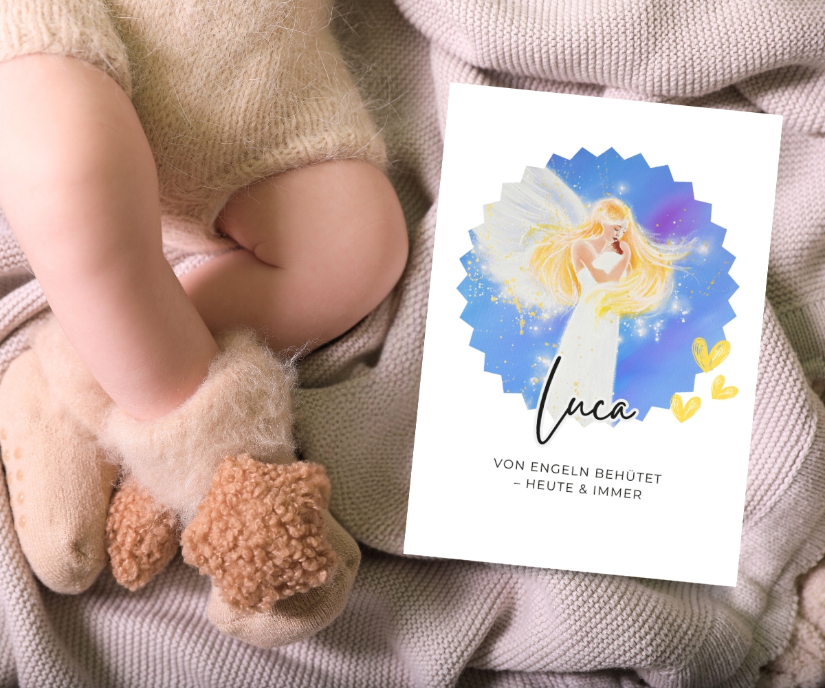 Jedes Engelbild entsteht individuell und wird dank deines persönlichen Textes zu einem liebevollen Erinnerungsstück. Der Engel soll behüten, Mut schenken und Geborgenheit weitergeben – einmalig wie das Kind, für das es bestimmt ist.