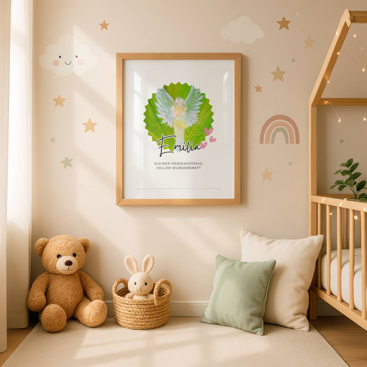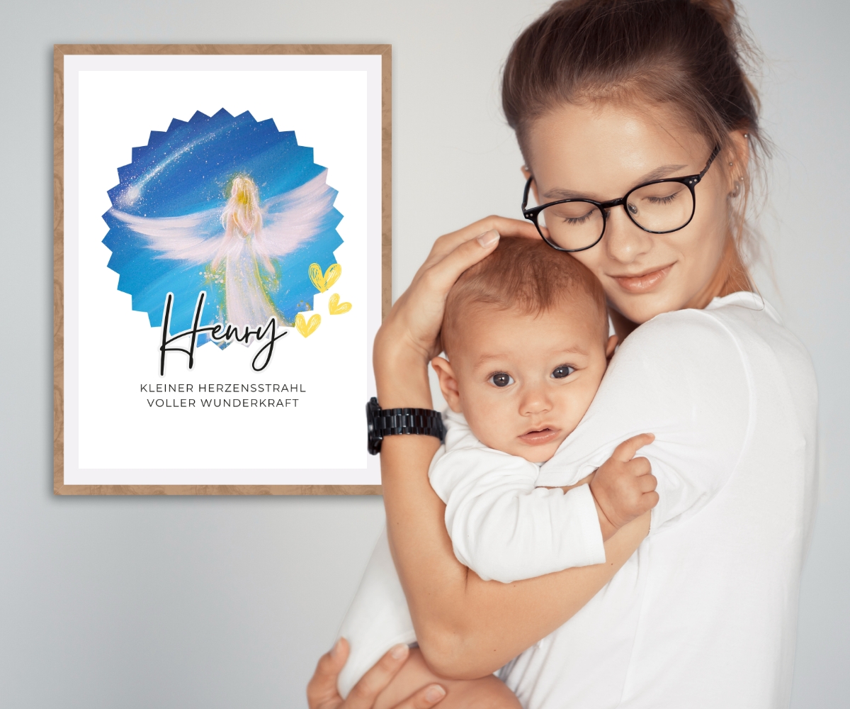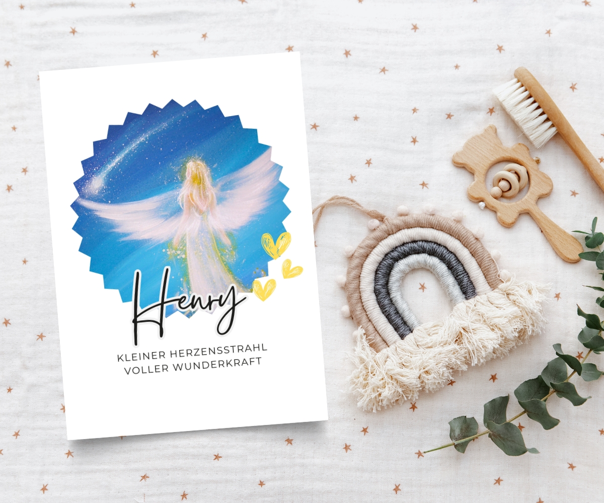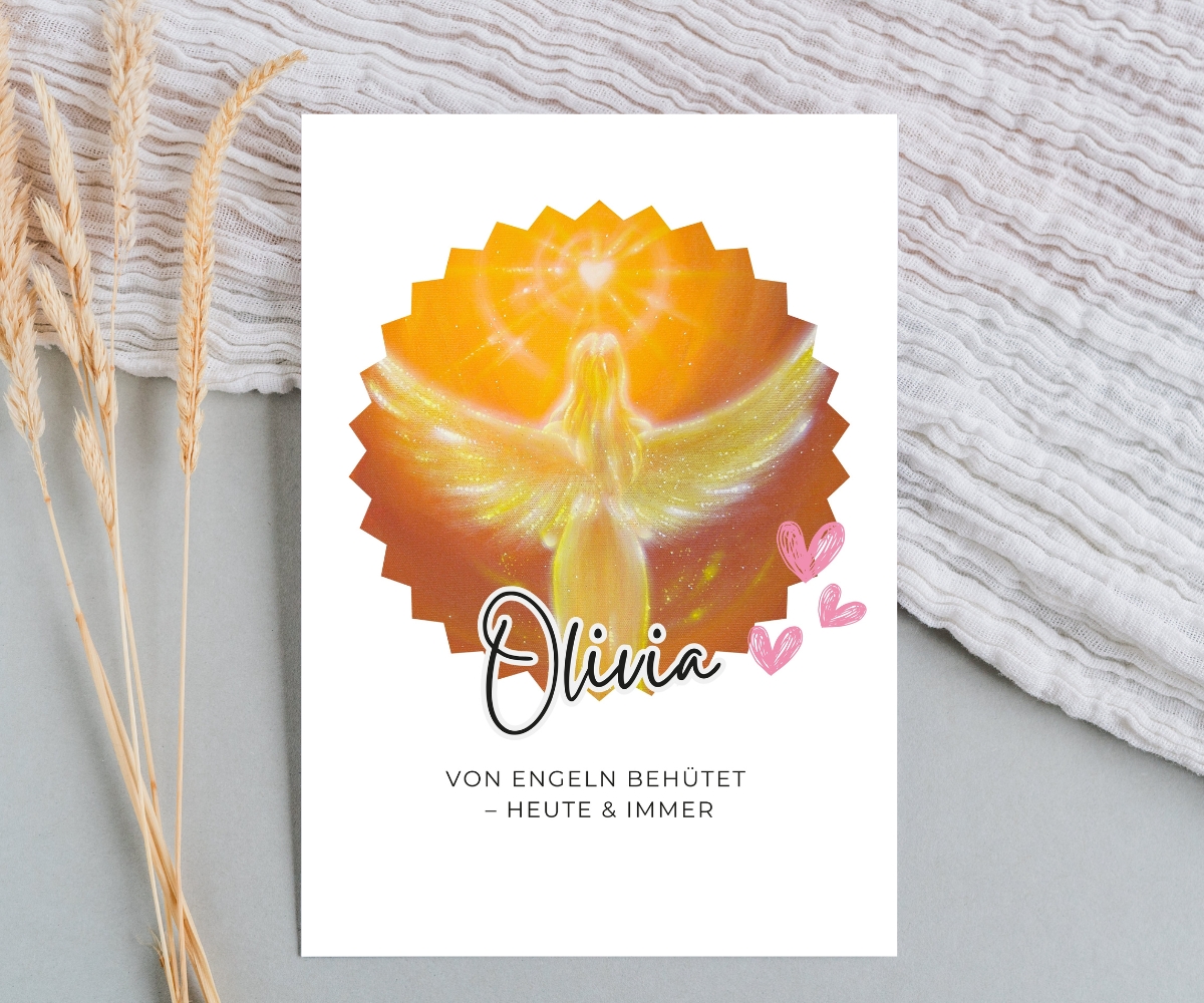 Jedes Engelbild entsteht individuell und wird dank deines persönlichen Textes zu einem liebevollen Erinnerungsstück. Der Engel soll behüten, Mut schenken und Geborgenheit weitergeben – einmalig wie das Kind, für das es bestimmt ist.