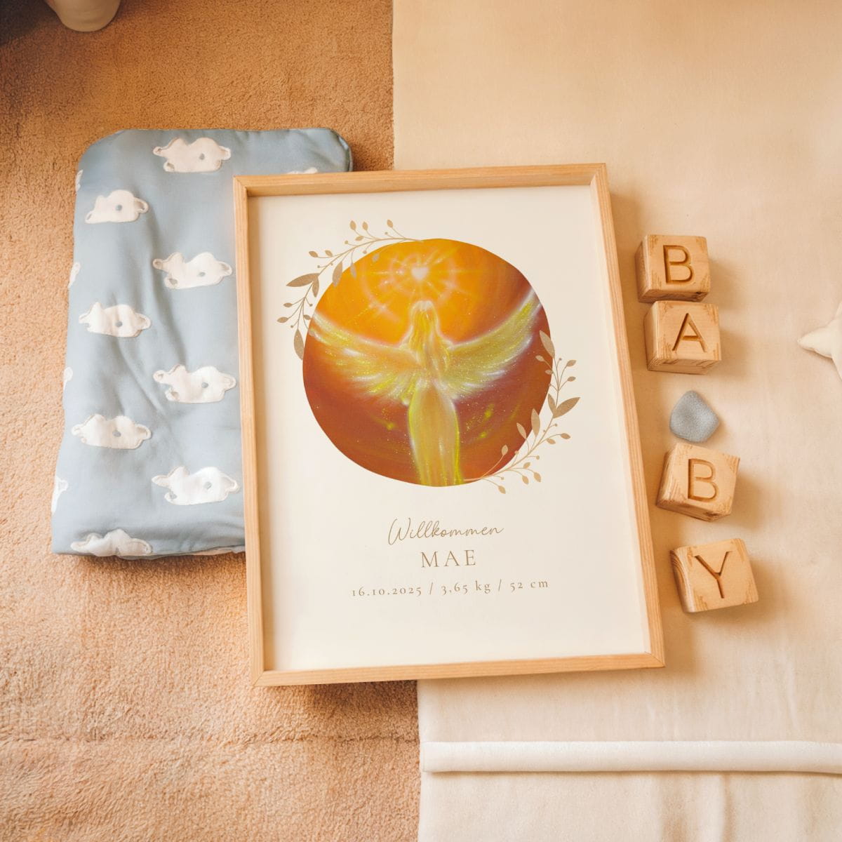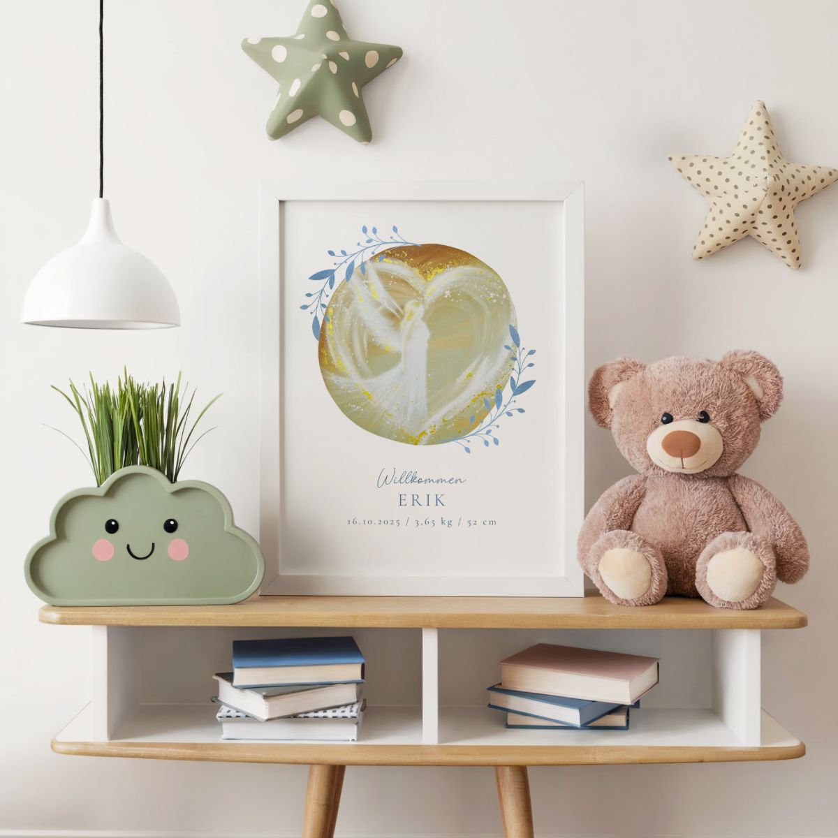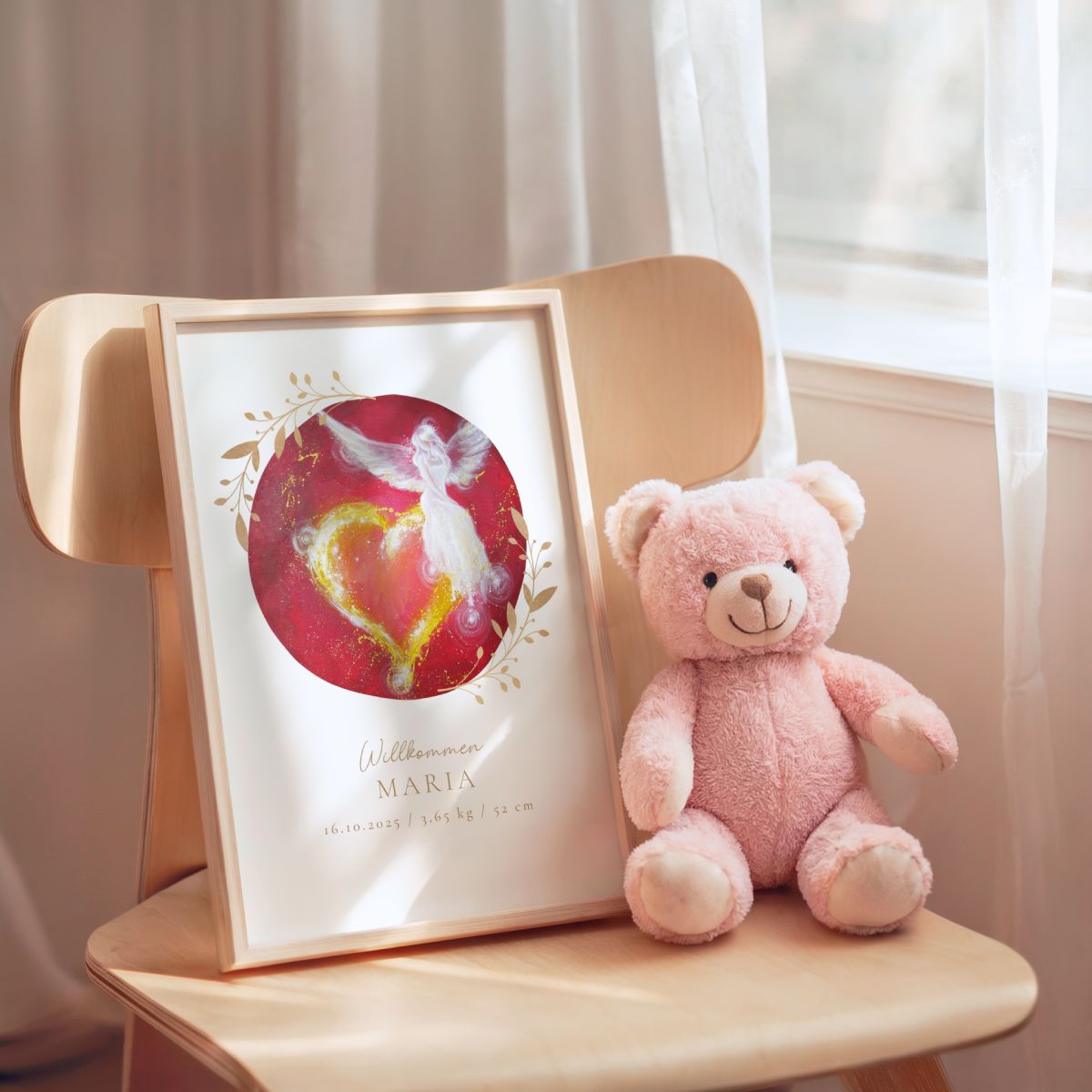 Jedes personalisierte Engelbild entsteht individuell für dein Kind. Mit Wunschname und deinen persönlichen Daten, wird daraus ein sehr emotionales Erinnerungsstück. Ein kleiner Engel, der beschützt, stärkt und ein Gefühl von Geborgenheit schenkt – genau so einzigartig wie der Mensch, für den es bestimmt ist.