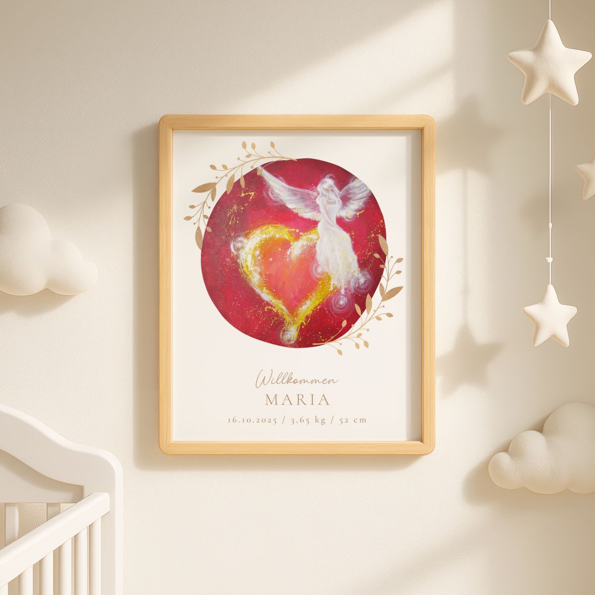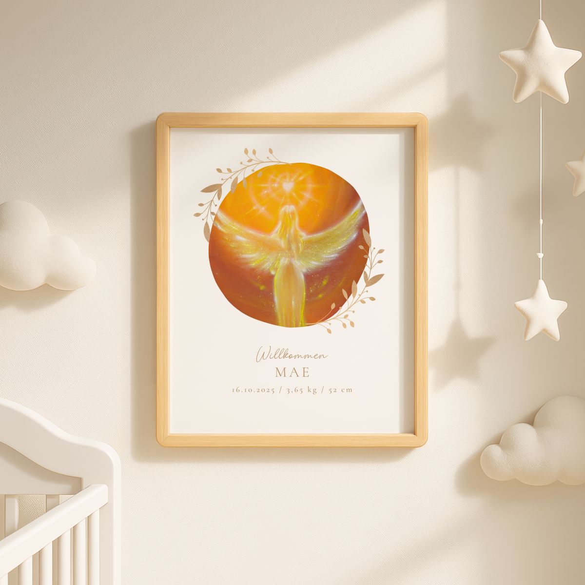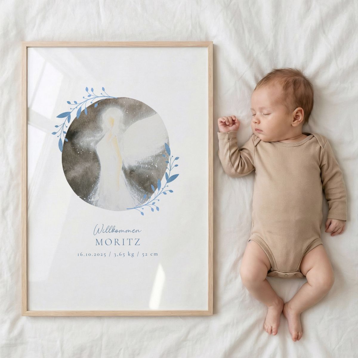 Jedes personalisierte Engelbild entsteht individuell für dein Kind. Mit Wunschname und deinen persönlichen Daten, wird daraus ein sehr emotionales Erinnerungsstück. Ein kleiner Engel, der beschützt, stärkt und ein Gefühl von Geborgenheit schenkt – genau so einzigartig wie der Mensch, für den es bestimmt ist.